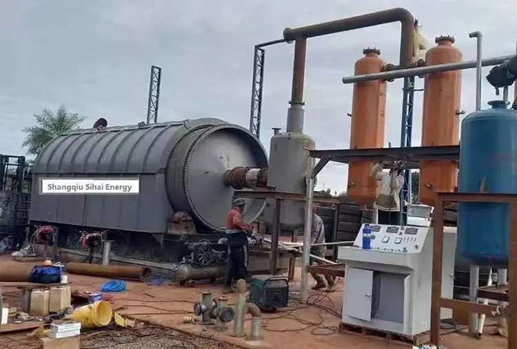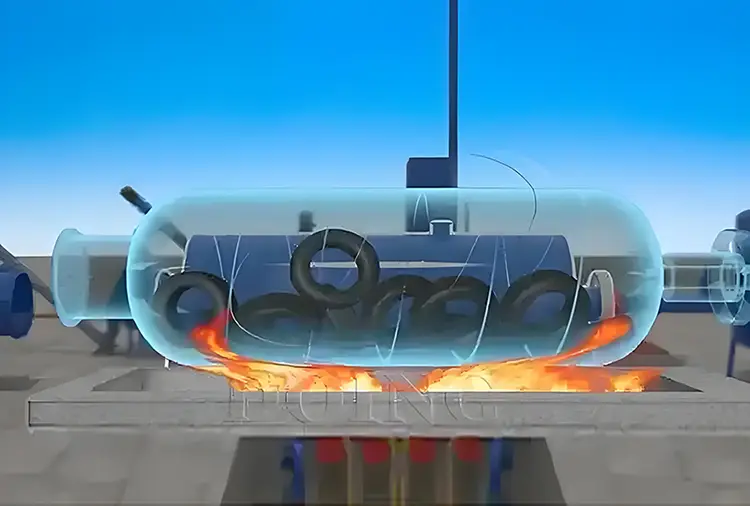 熱分解プロセス:酸素欠損環境での加熱(400〜500°C)は、ゴムをオイルガス混合物に分解し、燃料油を生産するために凝縮します。鋼線とカーボンブラックは、物理的な分離によってリサイクルされました。環境保護対策官: